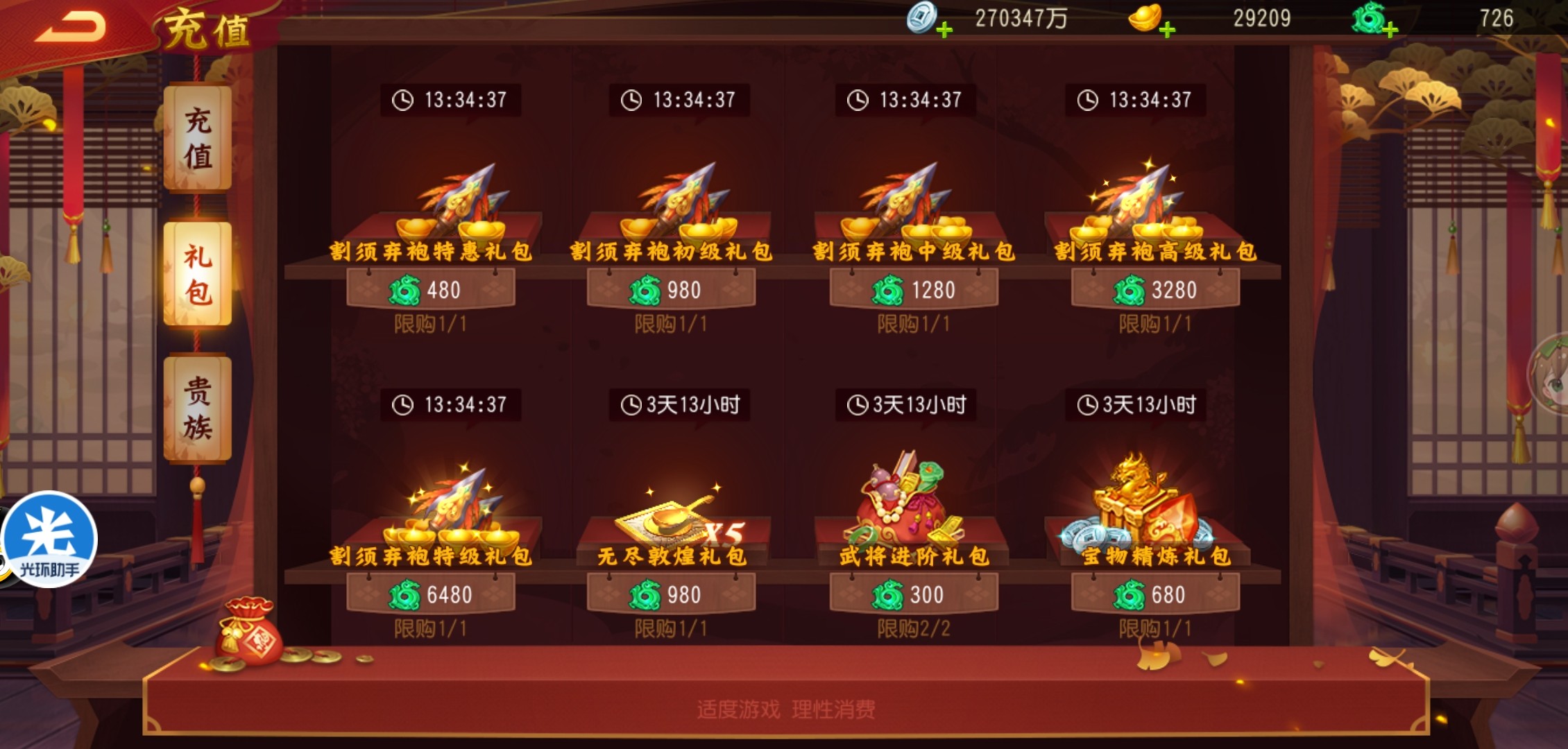 9、攻城略地新增礼包购买,每月9-19号且开服30天以上的服务器每天可购买该礼包;