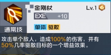 通常技解析:普通攻击,伤害一般,50%概率驱散目标一个增益,突破后或许会增加概率。