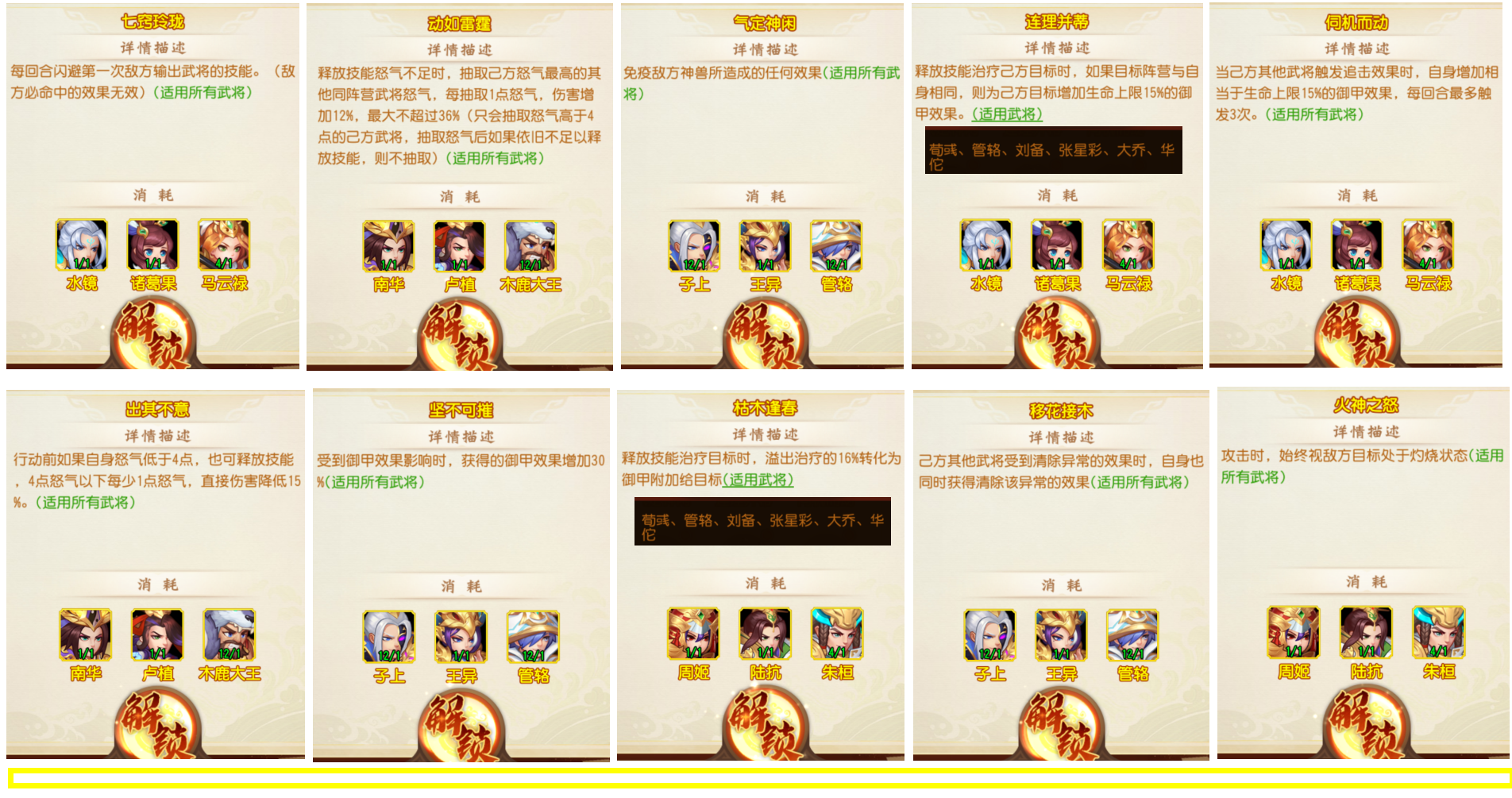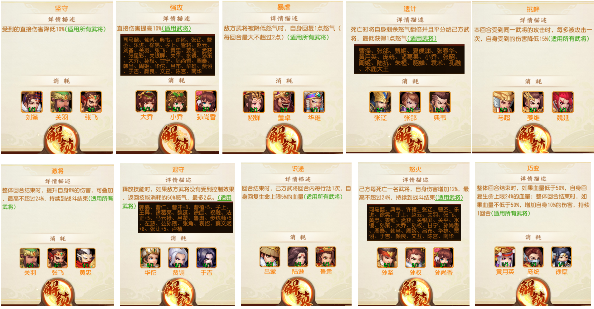最后是下面10种金战法的特性及适用武将: