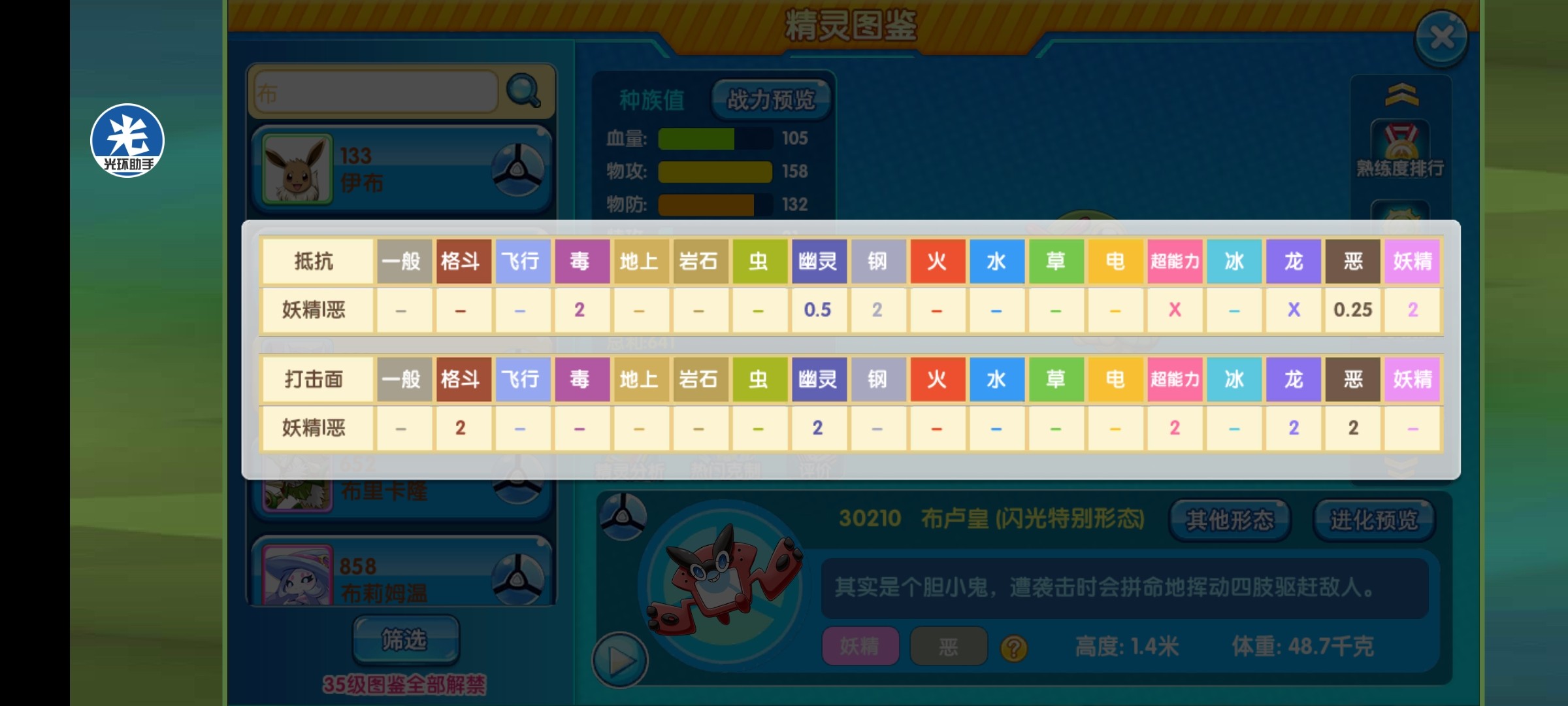 总结:布鲁皇原型类似于斗牛犬,全身以淡紫色为主,手腕、脖子处有黑色的条纹,下颚有重而巨大的犬齿,原版只有妖精系。如今加入了恶属性,个人感觉布鲁皇不太适合这个版本,速度慢,没有效强化。这都是致命弱点,前中期玩家可以玩,后期的话就不建议了,看这玩意强度,应该是白嫖宠级别的,当然策划要是真拿出来卖,只能说谁买谁吃亏,好了,本期关于布鲁皇的攻略就介绍到这里,大家有什么不一样的看法可以留言探讨。求求大家赏个赞吧!!