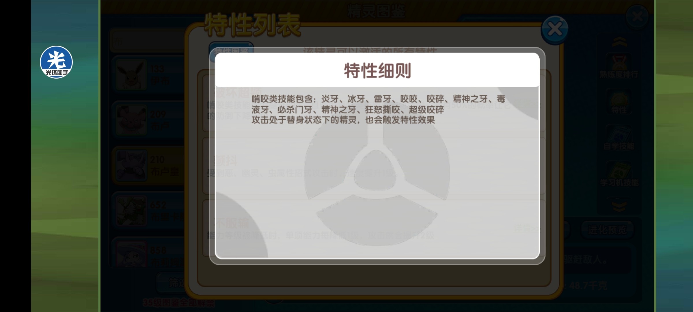 还有斗争之颚,这个技能特性图鉴虽然没说,但是也是享受破坏之颚,估计后面图鉴就会补充,这玩意虽然技能都不错,但是都需要学习机,斗争之颚虽然经过加成比灭龙掌威力高,但如果对付龙系宠,选择灭龙掌也不错,它的先制效果有时候非常关键。