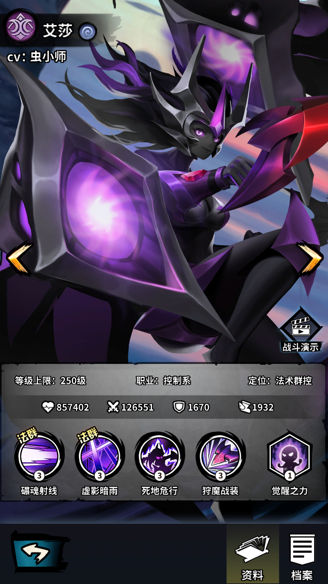 控制技能 攻击敌方攻击最高的三名英雄,并有60%概率使目标沉默,持续二回合。对减速状态100%附加剧毒效果,持续二回合。