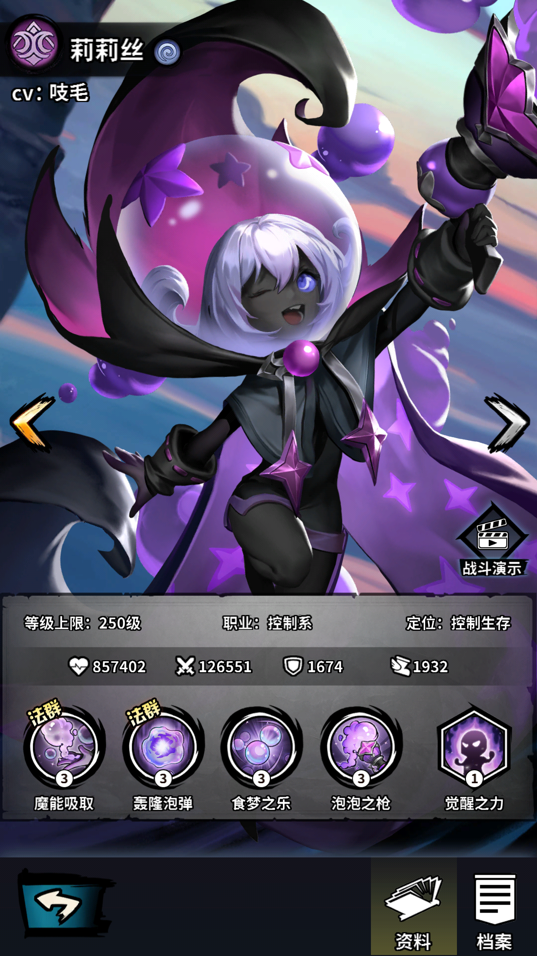 简评: 控制削弱版的球女,但是肉度和伤害以及功能性(吸取攻击,防御,速度)要比球女高一个等级