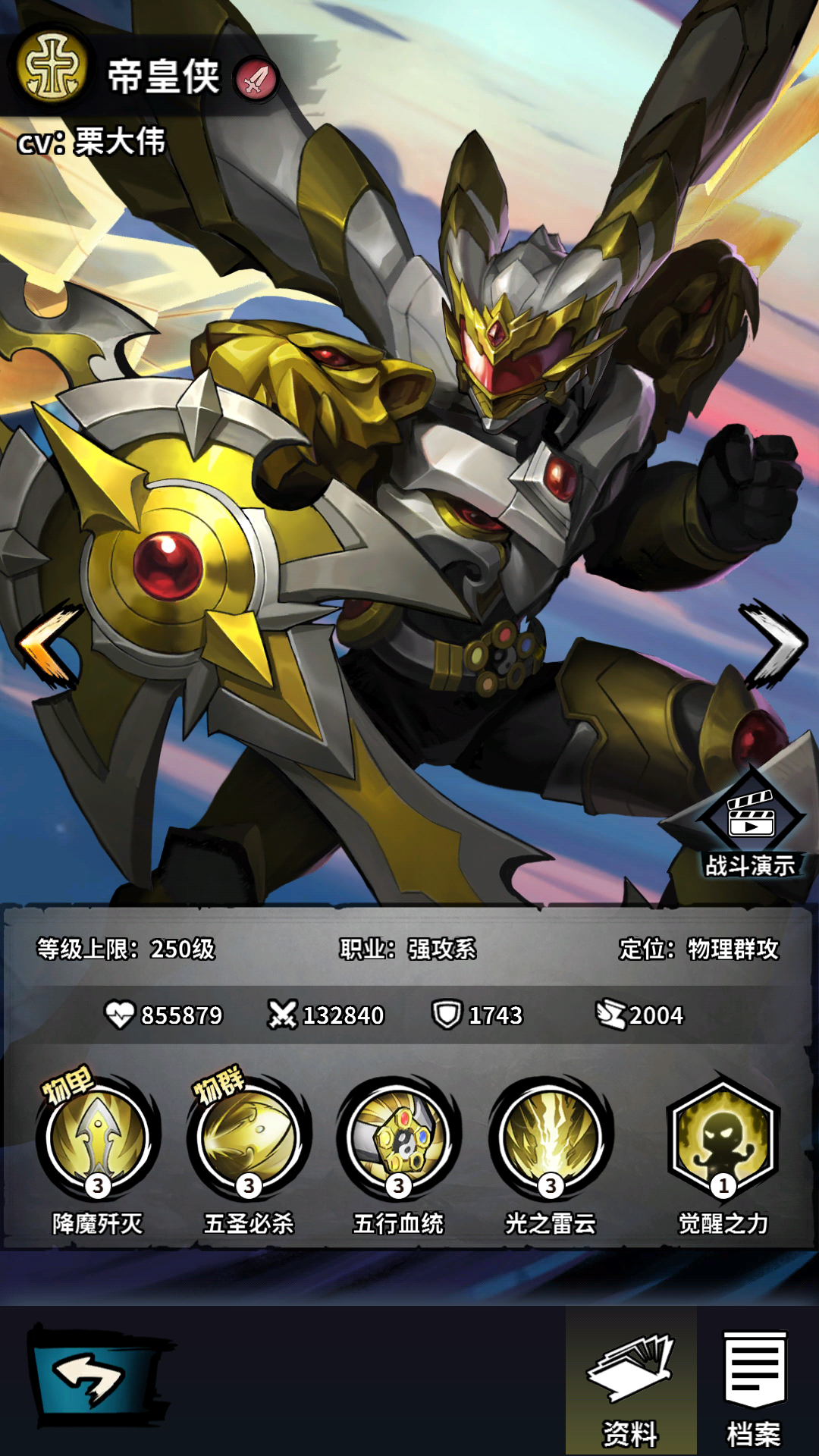 lv3:每次触发雷云伤害,提高帝皇侠10%攻击力,最多叠加三层。雷云伤害可以稳定触发,不像某些英雄的觉醒技,提高攻击力需要各种条件,比如说大招。雷云伤害,虽然是第二回合开始触发,但给到了帝皇侠大招加成。lv4:帝皇侠普攻变成攻击敌方随机三个目标,80%概率附加震雷效果。