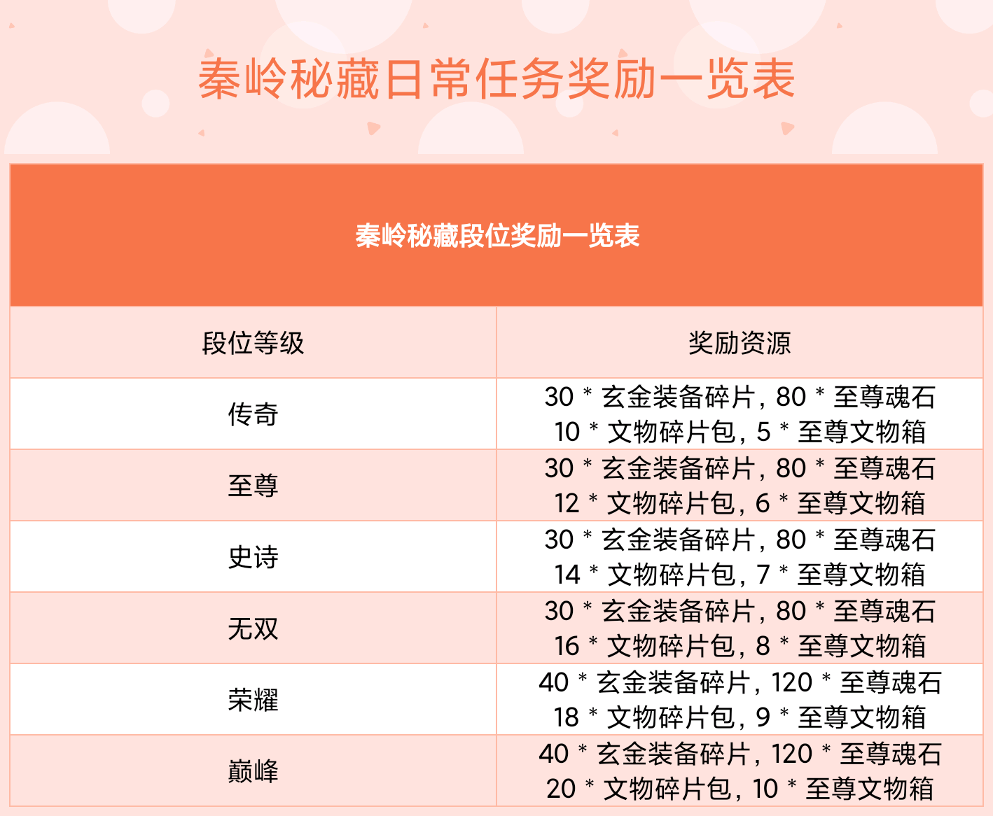 ③玩法奖励:该玩法奖励形式颇多,一般分为日常任务奖励,周常任务奖励,赛季任务奖励,段位任务奖励;在排名上,跻身战区或者全服榜的还有额外的丰厚奖励。日常任务奖励以地元石和天工石奖励,周常任务奖励以地元石和百宝刃以及文物箱为主,赛季任务只奖励天工石,但数量较多;段位奖励最为丰厚,以玄金装备碎片,至尊神兵魂石碎片,以及文物箱为主。此外,排名奖励分为战区排名奖励与全服排名奖励,战区排名以大量地元石,大量玄金宝物以及大量文物宝箱为主,奖励极其丰厚,全服排名奖励则以挂件和称号奖励为主,第一名称号为祖师爷,第二名称号为泰山北斗,第三名称号为摸金魁首,第四-十名称号为万中无一,11-100名称号为摸金校尉,*名称号为夺宝达人。