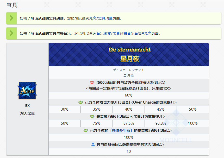 如果换成双梵高,那宝具就是60%攻击力+300%暴击威力提升+3回合每回合获得20暴击星,那对于打暴击输出的从者是非常恐怖的增益BUFF,可以大幅度提高暴击伤害(说的就是你,水BB)。