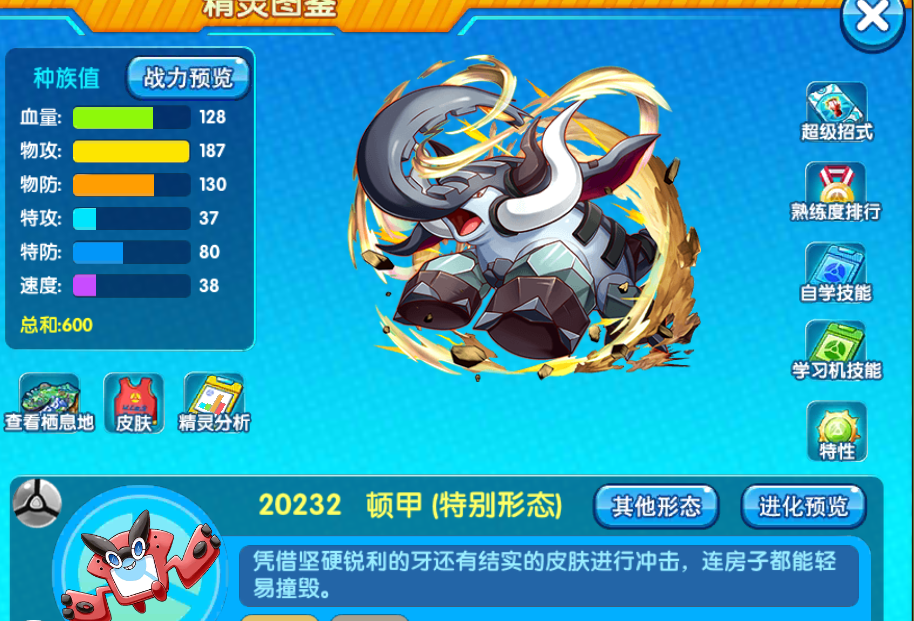 技能搭配:高速回转、甲壳回复、地震、落拳(猛毒素、吼叫)