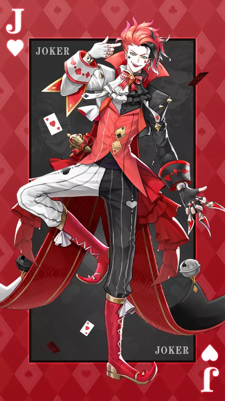 乔可皮肤来啦,皮肤灵感来源于扑克牌中的红桃J,采用了黑红配色这周将出现在游戏内活动中,先存个壁纸啦~