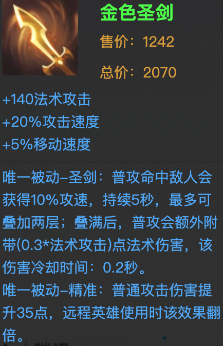 在之前体验服官方对其金色圣剑进行了调整,对法师英雄来说那是一直在常用的装备,而这次带来调整的是精准被动加强,那么下面我们一起来看看金色圣剑这件装备的属性数据。