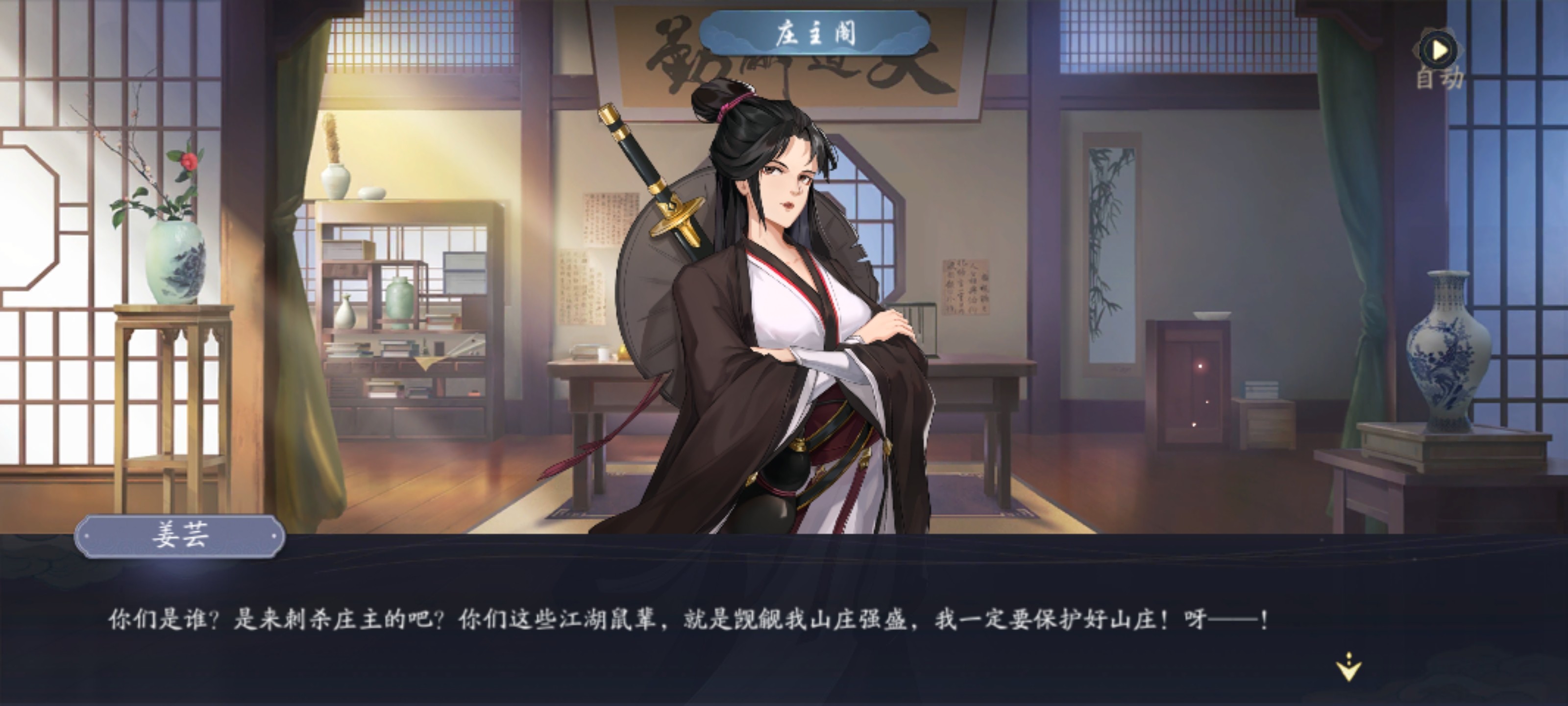 前往庄主阁唤醒弟子并进入战斗