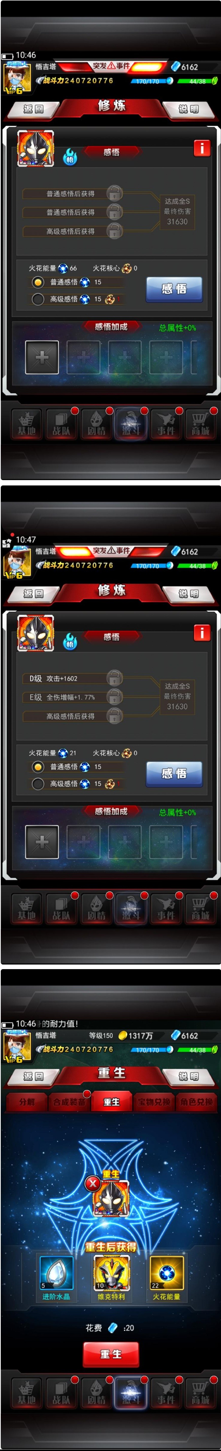 然后重生后,只给了22个能量,也就是说重生资源会减半憋(包括确定和非确定的,洗炼装备就不一样了,好像只会返还确定的