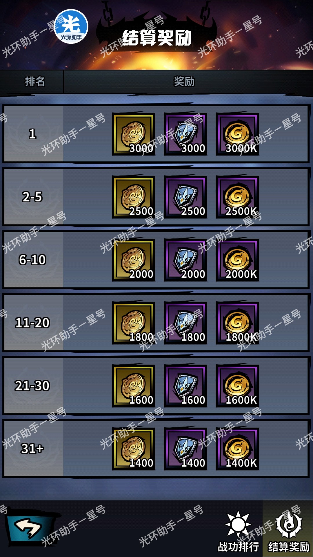 根据成员在公会战里的战绩排名,给出排名奖励。