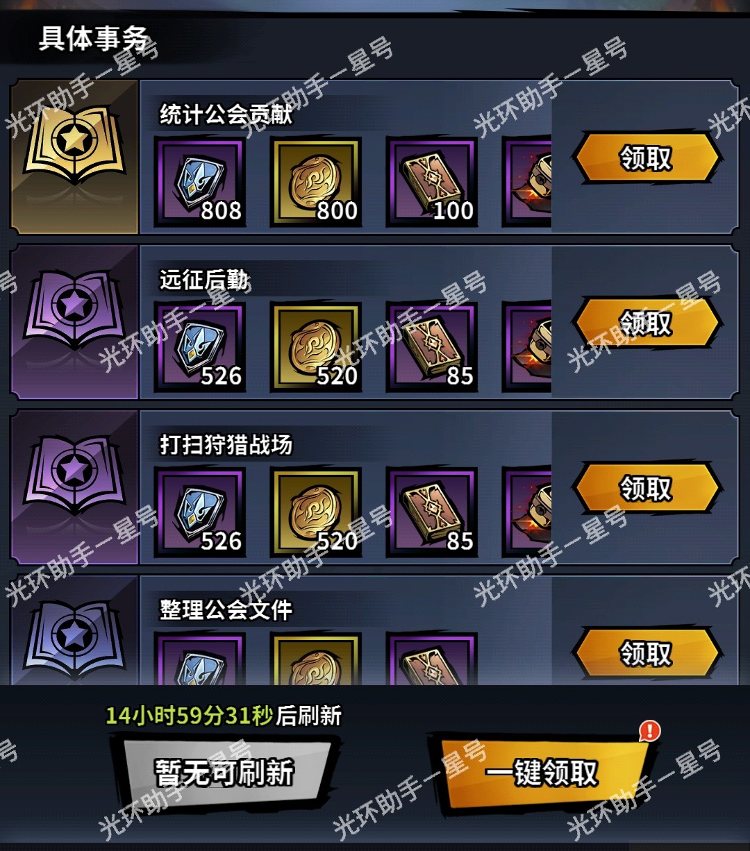 进入公会后,每日有五个内政任务。