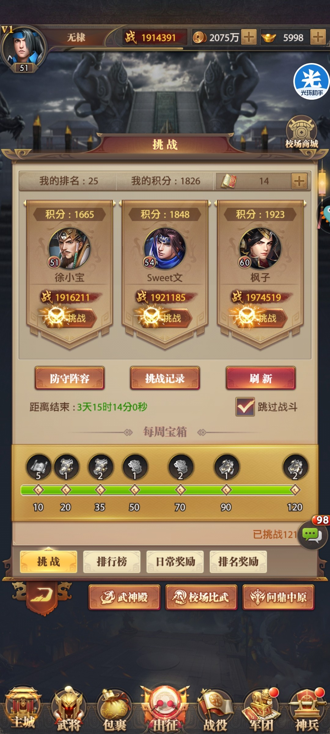 把事情弄完之后就要开始琢磨着怎么把手上现有的资源转换成战力,因为今天是测试账号的第一次问鼎中原!(周一)