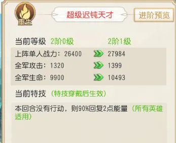 超级迟钝天才:本回合没有行动,下回合70%回复2点能量,遇到眩晕队用效果最好。(都给我带上去哈哈哈哈)