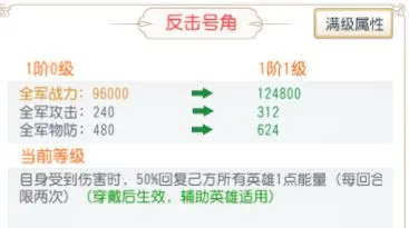 反击号角:自身受到伤害50%回复全体能力,必备战技,适用各种场合。(要是我有这个的话我会放在输出身上,别问,问就是放)
