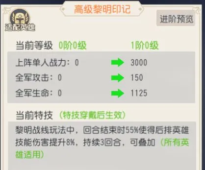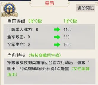 国王和皇后:必备技能,适合伤害高或者技能后全体回能的英雄用。(前期收集的千岚和艾伦可以过渡,其他英雄上去就去换这两个战技,能量是战斗中非常重要的)不要舍不得换。