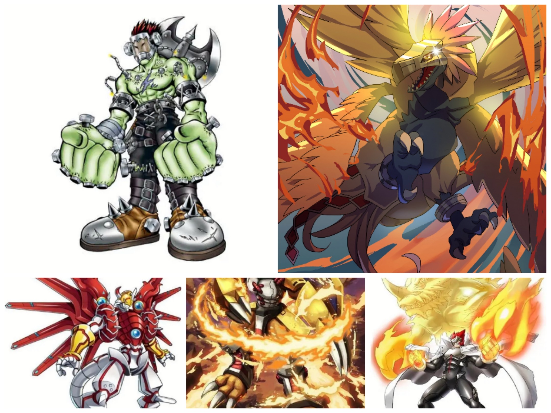 成员为:战斗暴龙兽 闪光暴龙兽 凤凰兽 螺栓兽