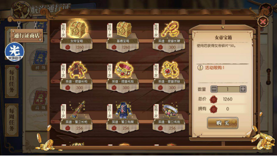3、购买精英通行证商店,竞换警卫套装和女帝等角色宝箱。