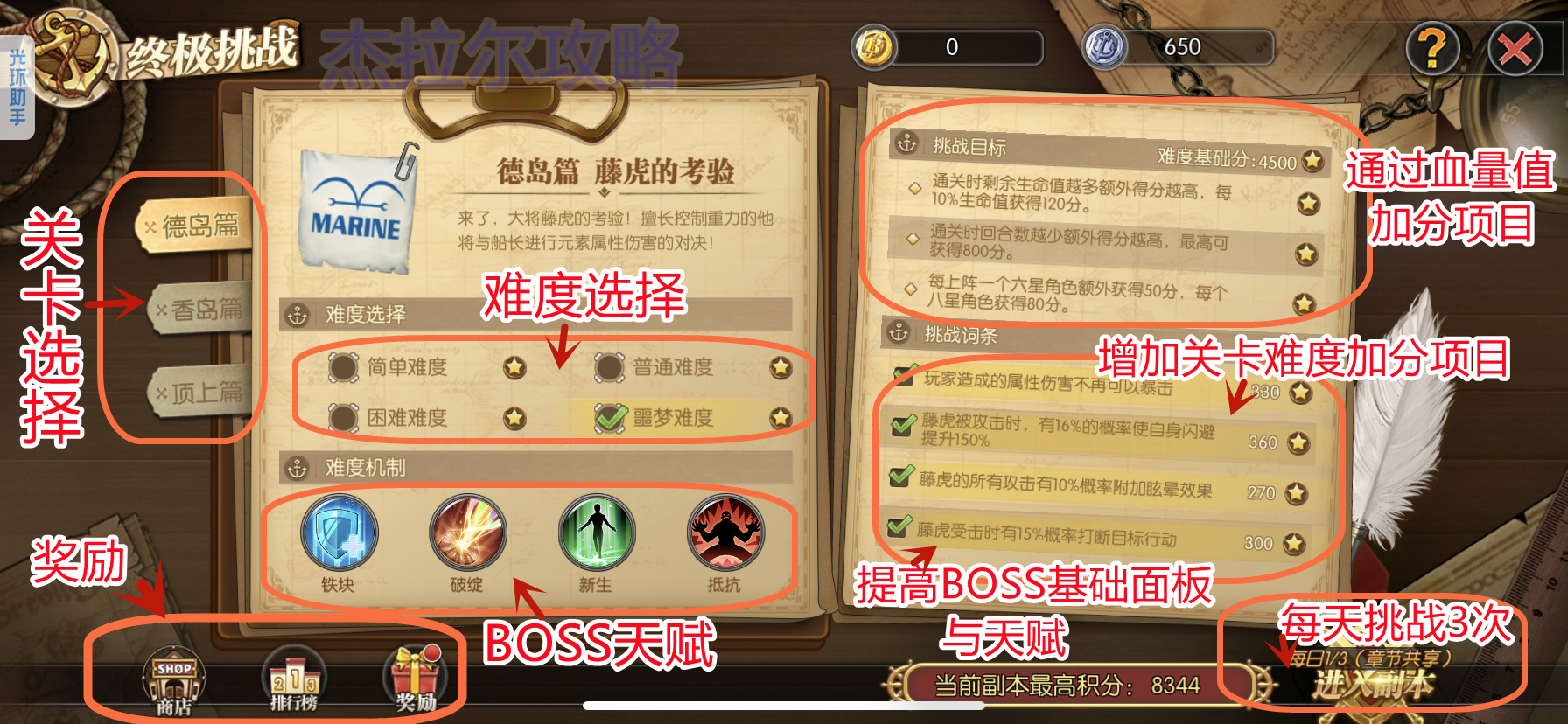 哈喽,大家好,我是杰拉尔,11月25日,我们的限定人物迎来一波的加强,没错,就是增加4突破,不过他的突破材料来源终极挑战排名奖励与总积分奖励,一周也只能兑换5个。所以各位大家努力加油挑战啊!话不多说,现在我们去了解终结挑战的玩法与通关技巧:一图了解副本内容: