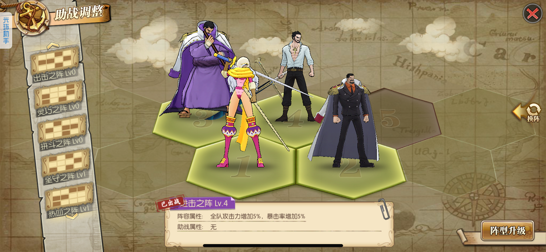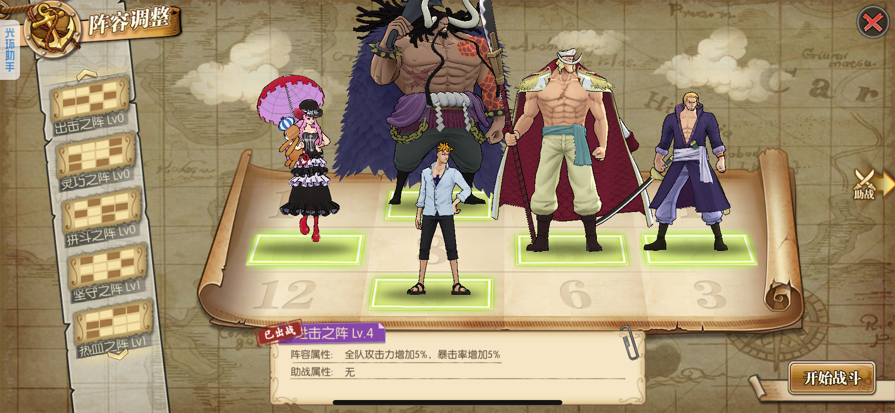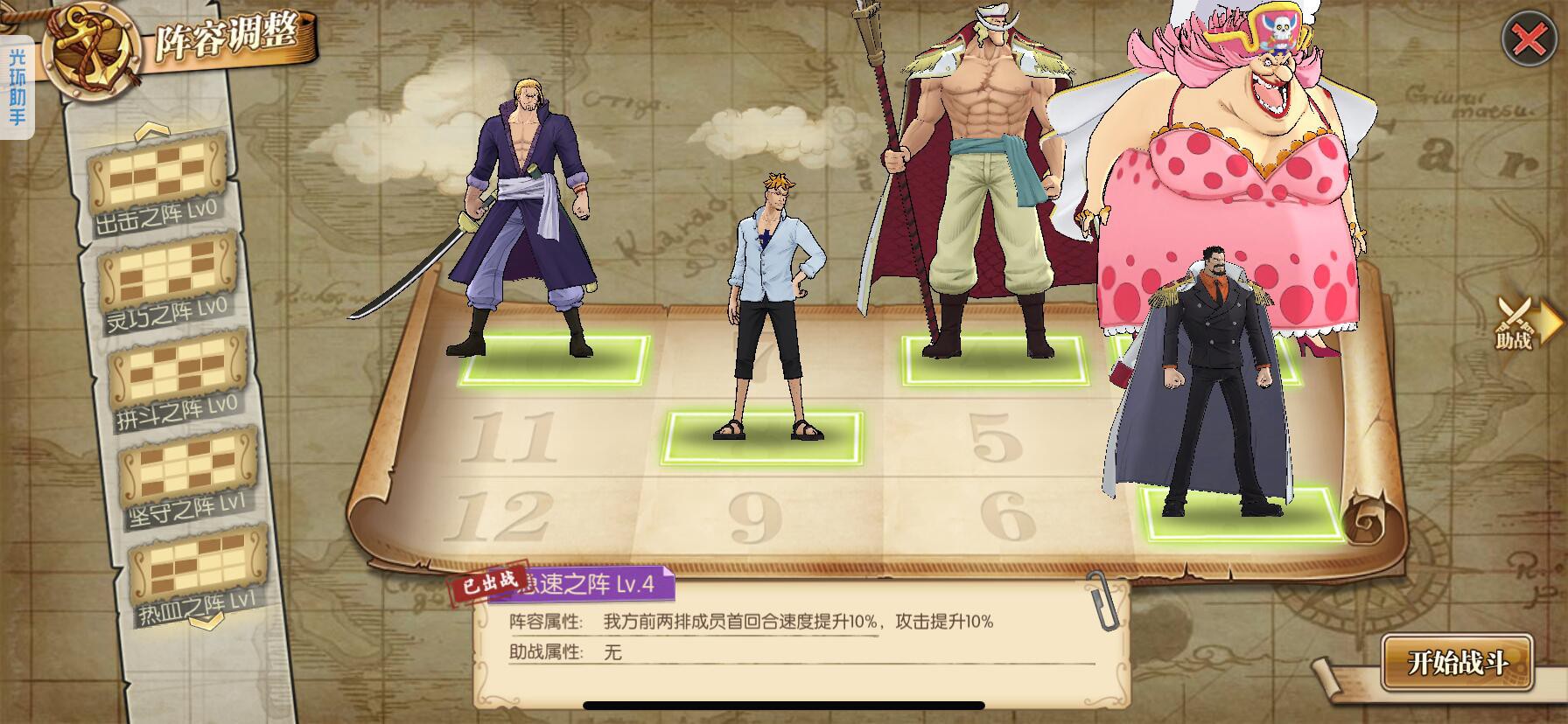 助阵推荐:乔巴、奶昔、鹰眼、藤虎、卡二、白马、山治以加输出或命中效果为主
