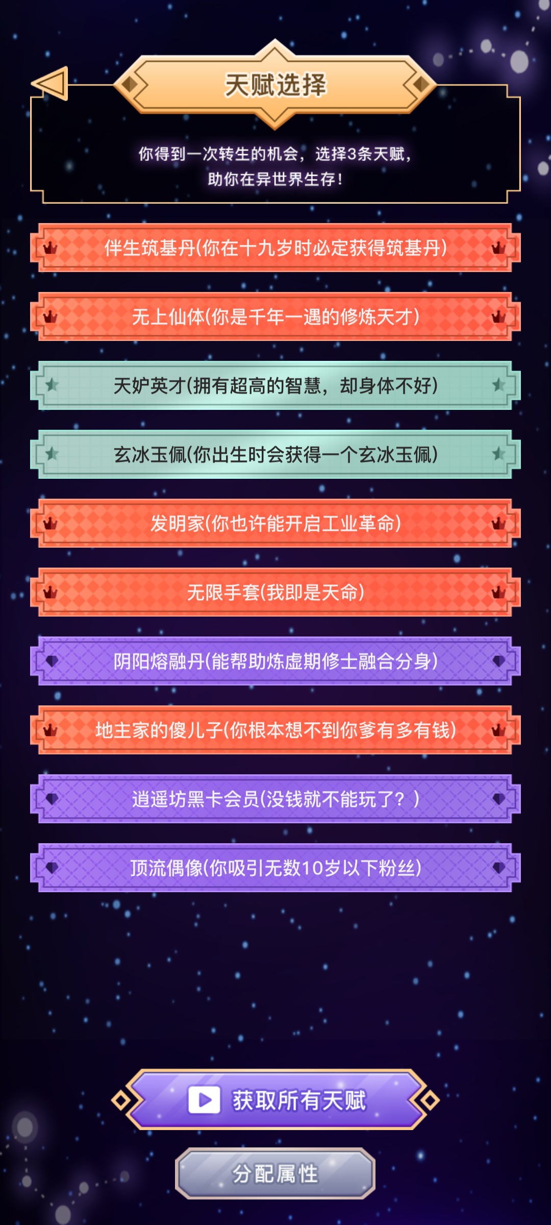 选择双修:选择高境界,需要40以上的家境,家境-10修为+7