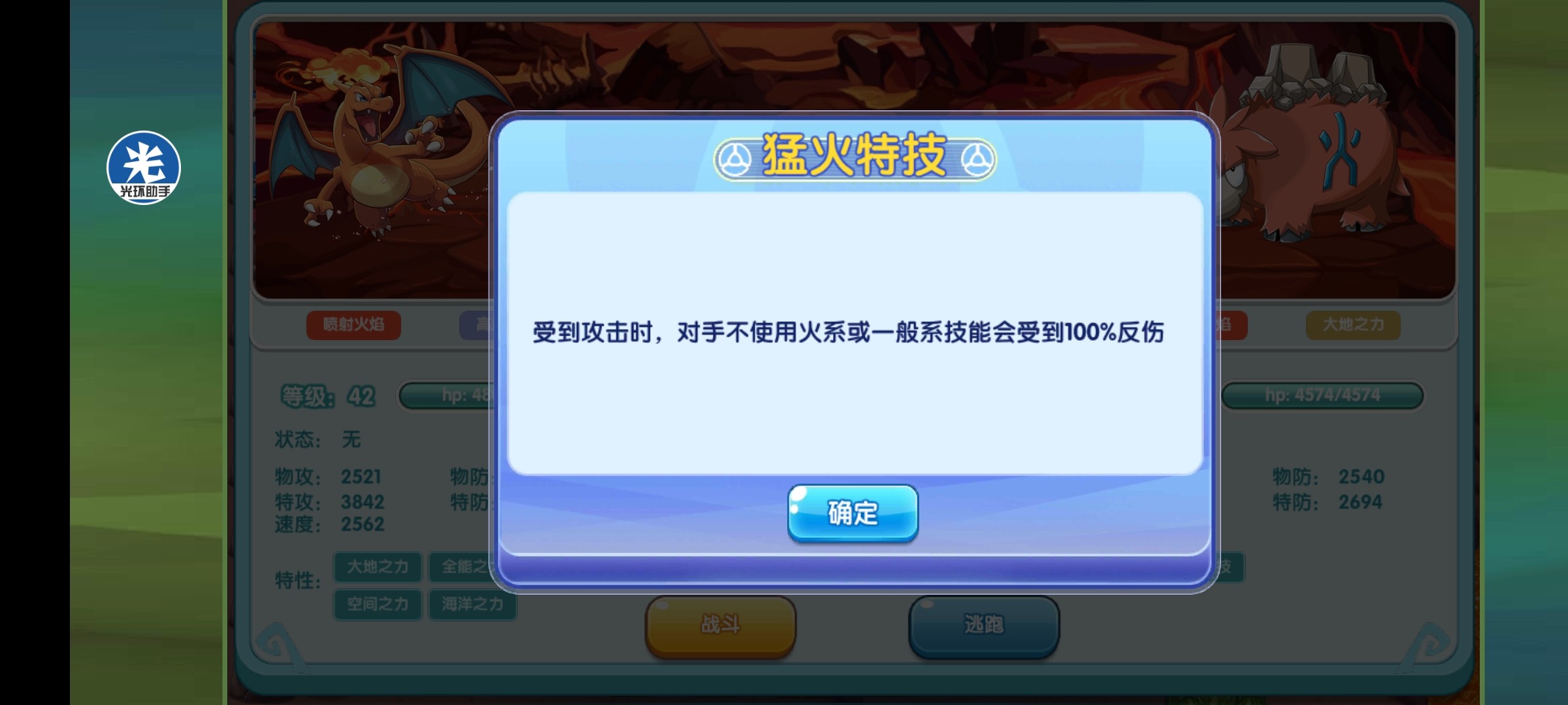 这次对方是猛火特技特性,所以喷火龙还不行。