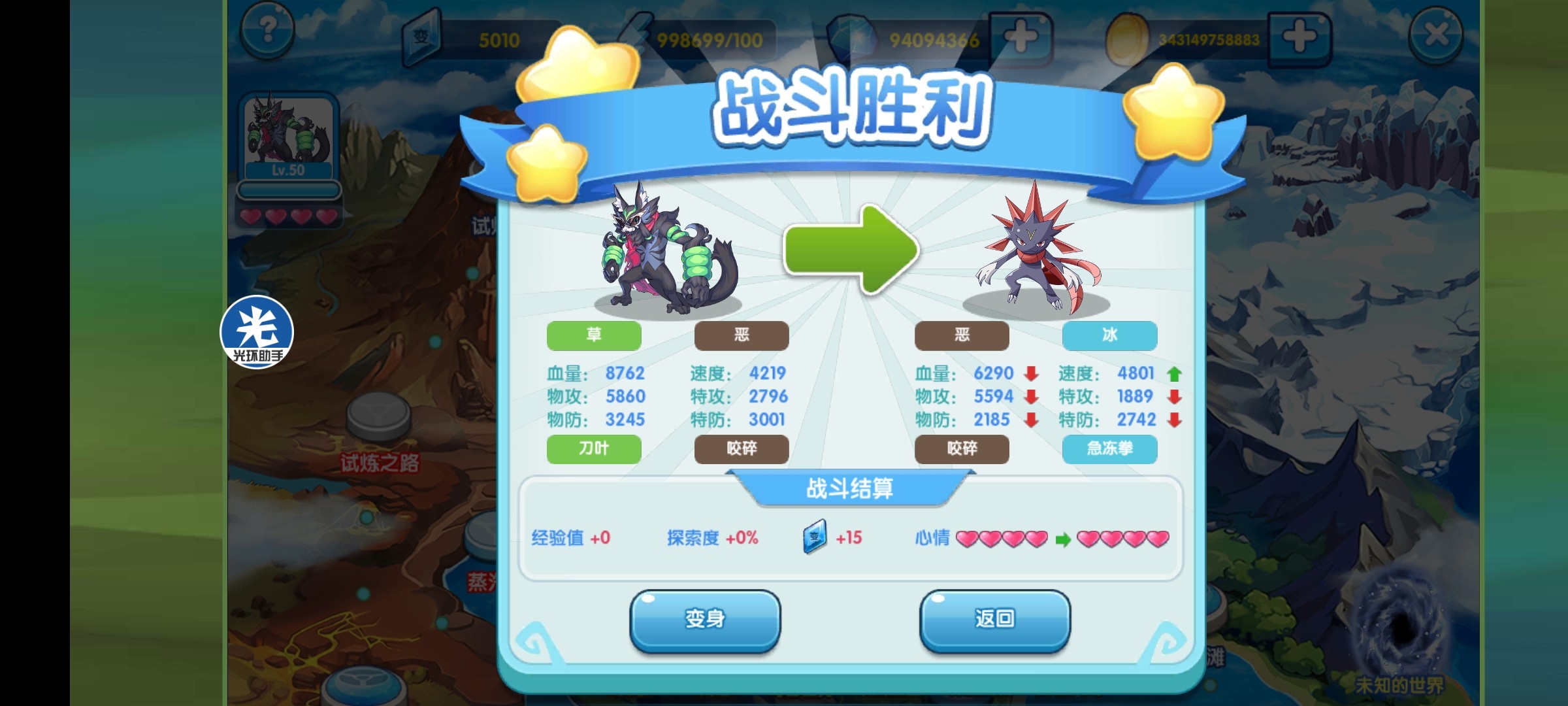 这次的对手是格斗系主打,不过有两个特性,前两个免疫特攻,最后一个免疫物攻,所以要先去其他地图。