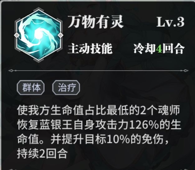除此之外,我方魂师攻击带有撕裂目标的对手,能将造成伤害的20%回复给我方生命值最低的魂师。