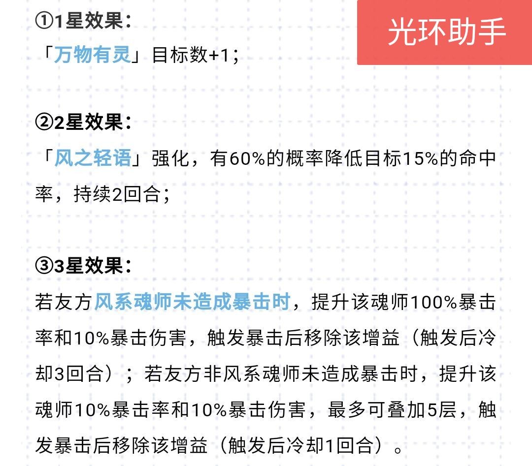 一星效果增加回复,加大了对我方输出魂师的暴击提升概率。