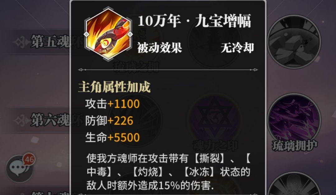 武魂七宝琉璃塔,10万年魂环选择九宝增幅,稳定增加撕裂目标受到的额外伤害。