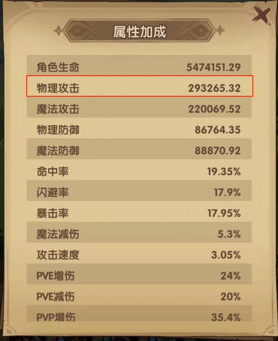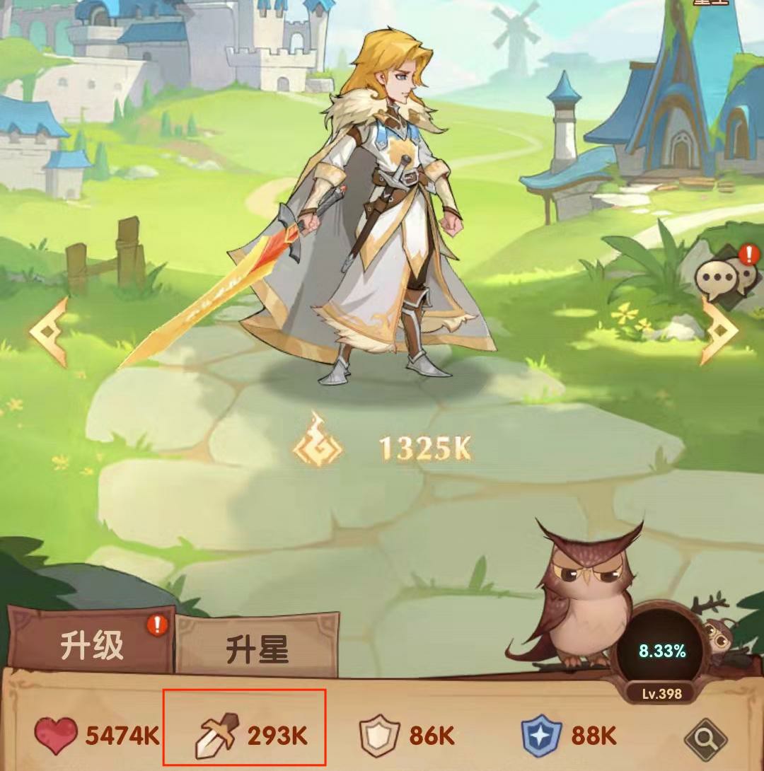 可以看到第一张图亚瑟面板中显示的攻击力数值293K