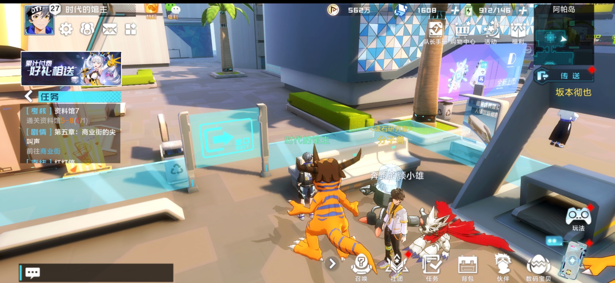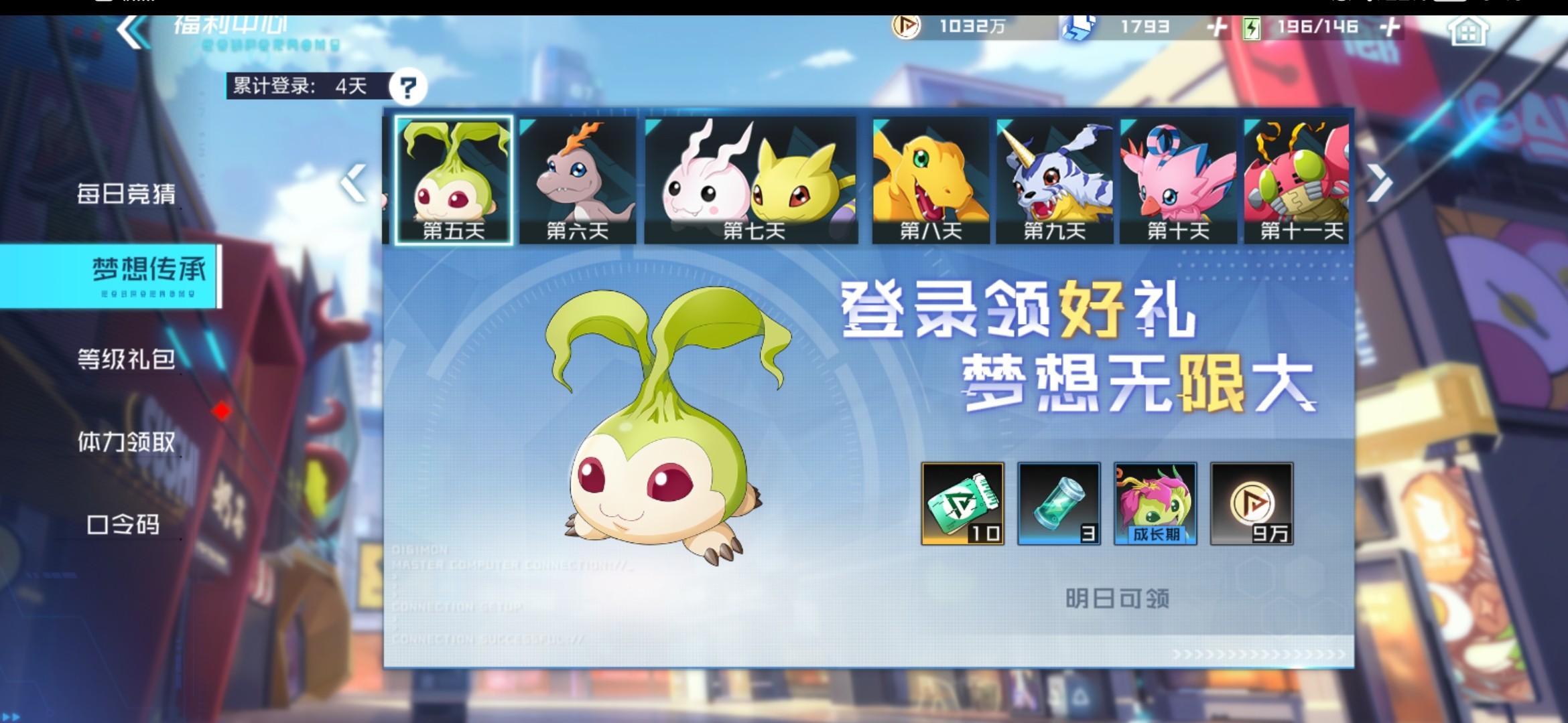 每日登录就可以领取,奖励为一代主角团数码兽与一定数量的绿票。