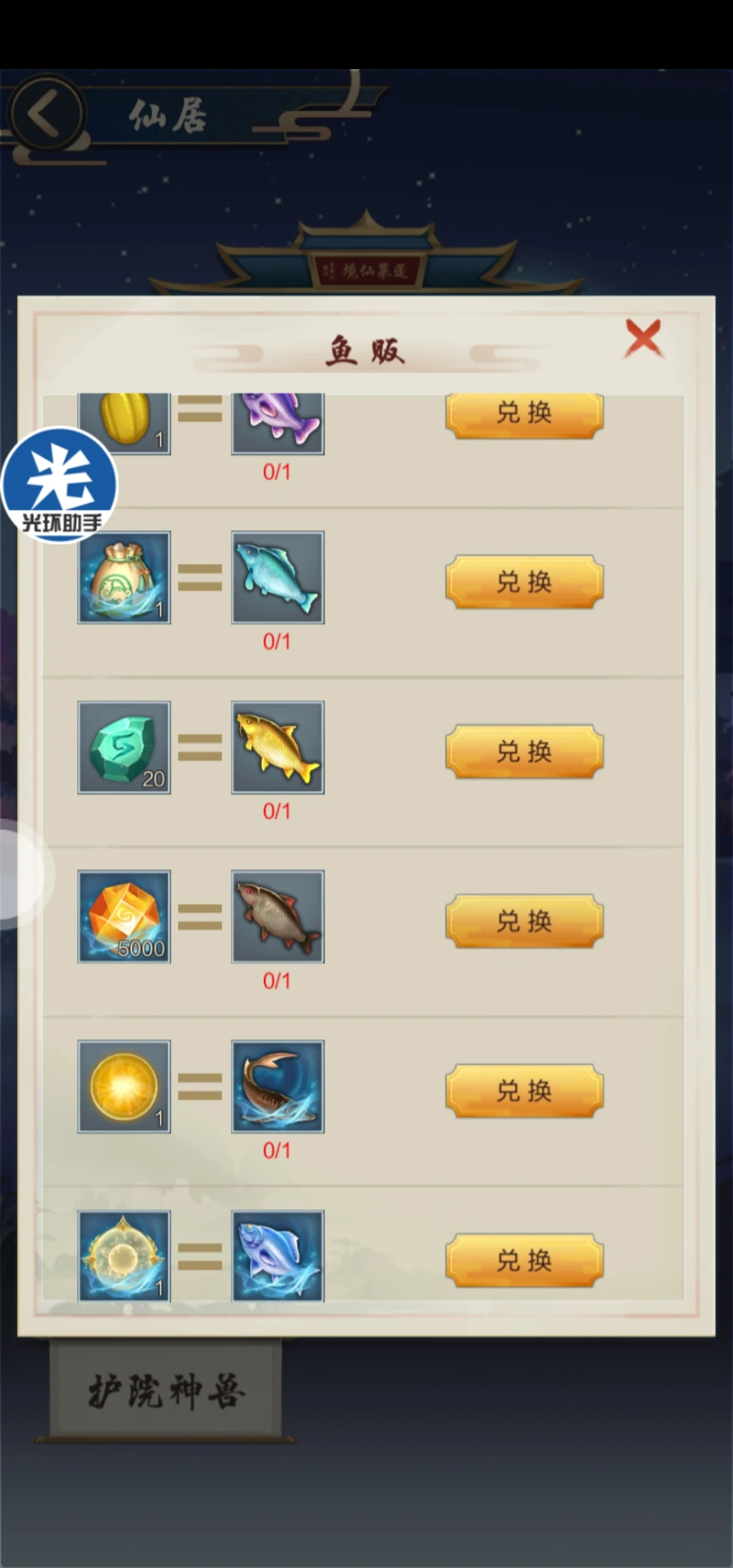 4、护院神兽:护院神兽其实就是孩子的坐骑,只要花费1000神石开启就会带一只神兽。也会增加孩子的属性。不过当忠诚度低于60时候,属性加成就不会生效。神兽加忠诚度的道具需要从仙坊内的珍馐坊,以及征程内的仙玉楼购买。