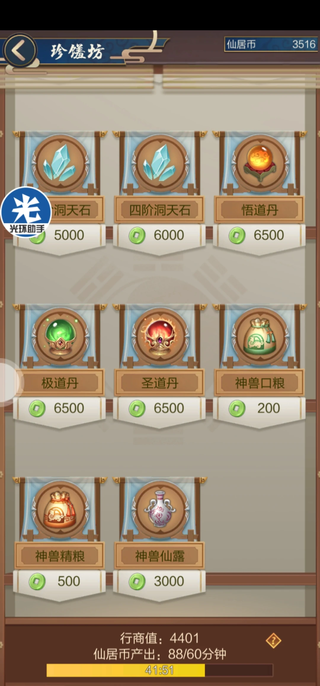 升级:升级需要神兽口粮或者精粮,口粮可以从珍馐坊与游心塘获取。精粮只能从珍馐坊获得。