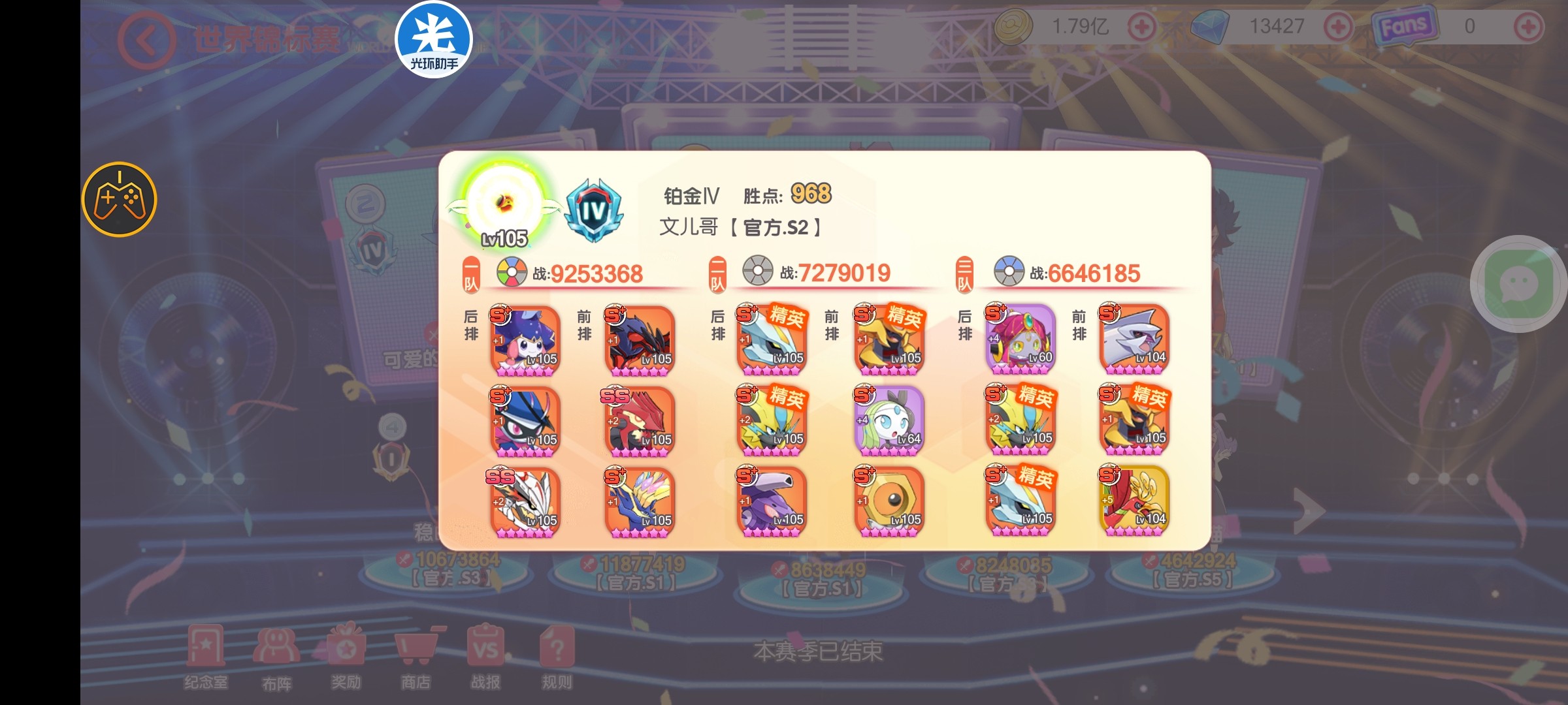 然后可以将其中几只精灵设为精英,精英可以在不同队伍使用加起来最多两次,也就是说,精英可以在一队用一次,然后在二队或者三队再用一次,目前来看,在先锋服SS似乎是无法作为精英的。