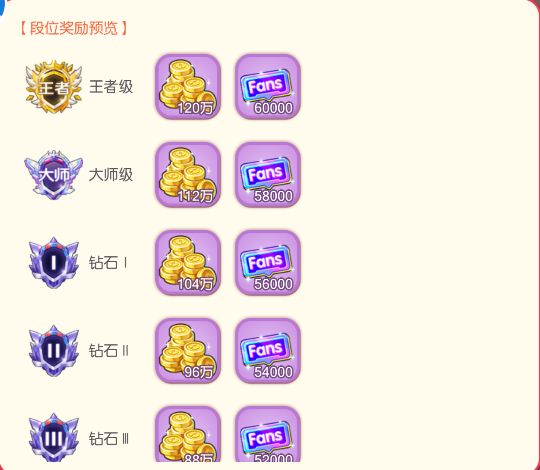 段位大致奖励如图所示