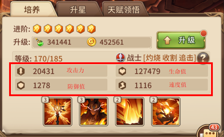 前面三个属性其实非常好理解,攻击防御生命,几乎所有的游戏都会有这种属性。这边重点给新手玩家介绍一下这个速度属性,速度的高低决定了你英雄的才出手速度。