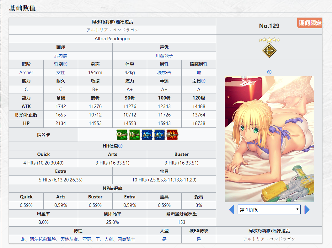优点:①优秀的宝具NP回收:FGO很多从者的NP率都被削过,但是弓呆没有,10hits蓝卡单宝具体依旧保留了0.59%的NP率,宝具后置回复20NP让弓呆成为FGO蓝卡单体从者之中宝具NP回收最优秀的那一个。