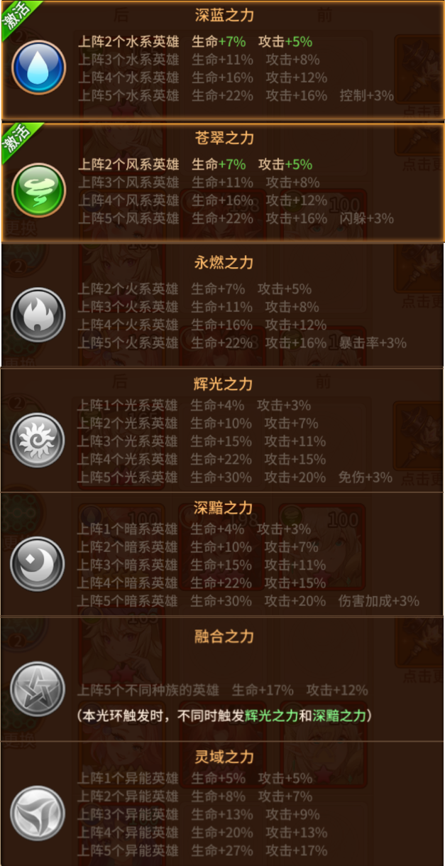 同理,大家不要刻意去追求下面这个激活的英雄系别羁绊加成,五风五水这种阵容固然可以激活更多的伤害,但实际上还是以英雄搭配是不是契合为主的。