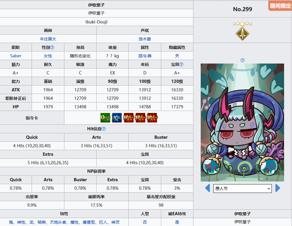 暴击威力提升十分契合伊吹童子,配合前两个技能的加攻出星红魔放加上自身优秀的面板能打出极高的伤害,单体宝具封印有用归有用,但对于伊吹童子的意义不大,死灵特攻范围过于狭隘,差不多可以无视。