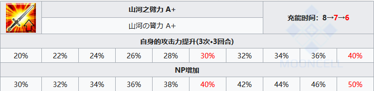 限次数回合提升的攻击力加成,虽然属于增幅量属于高额,但相较于回合加攻还是差了那么个意思,只能说特意的限制了强度,五十自充是伊吹童子作为优秀剑阶红卡光炮的核心,五十自充的含金量在剑阶里,在整个游戏里都是有目共睹的。