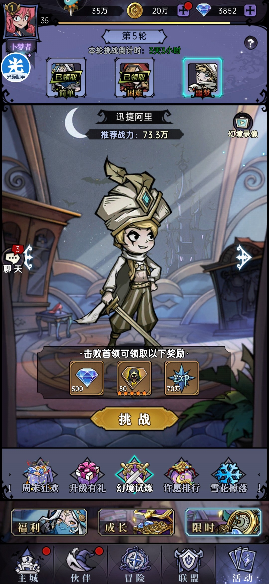 一千零一夜处有两个剧情副本,打完可以得到100五星碎片跟一些钻石,千万不要忘了打
