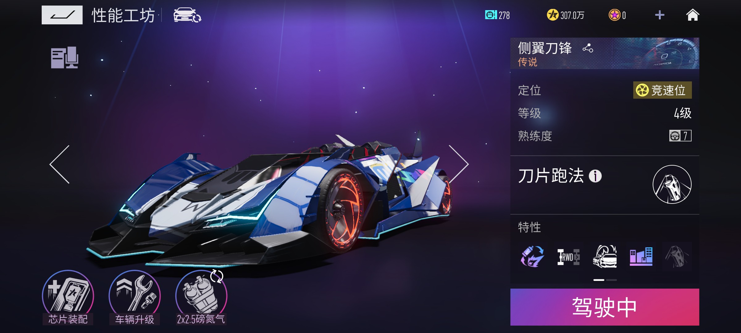 一个△三角形急先锋芯片(副属性建议极速、氮气时间、起步推进)