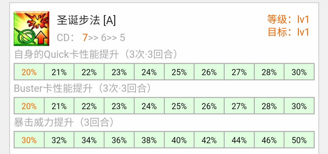 二效的三回合爆伤就大方很多,50%也很不错,自身所有指令卡hits数都不低,而且迦尔纳〔Santa〕宝具为绿卡,放绿卡体系的话,一般是不缺暴击星的。