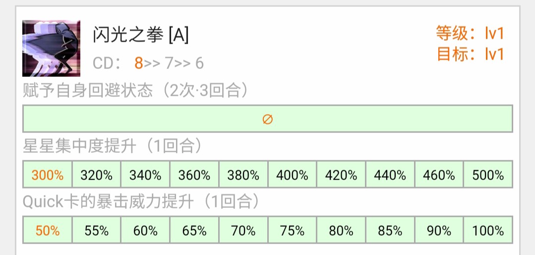 二效提升自身集星权重,本身剑阶基础集星权重就比其他职介基础权重高一些,再配合集星技能,可以更好的配合一技能的爆伤以及cba的绿卡爆伤,保证绿卡的暴击输出,在除了宝具卡外,普通指令卡的输出也有了一定保障;