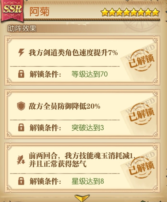 小菊基本上是有钱人的玩具罢了,平民的话并不推荐培养,助战目前也不太划算,所以有的话开个图鉴就行了。