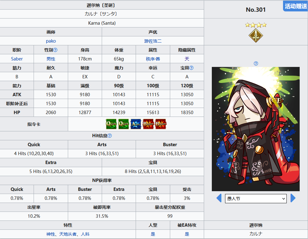 圣诞迦尔纳属于用的少,但绝不会到仓管的地步,保送五宝是好文明,史上第一位男性圣诞老人,不一样的收藏价值,建议是一定要打完活动获取,别忘了再临道具。