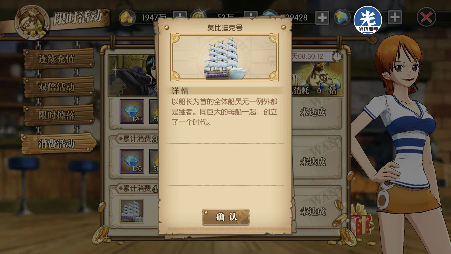 2、每间隔一周,基本都会有一次消费活动,但建议平民玩家尽可能多囤月卡的彩钻,囤到一定量的时候恰好碰上消费活动送船、宝石、强者券等道具的时候,可以搞一波。也可以是节日商店活动的时候直接买4级阵法,例如激进之阵。