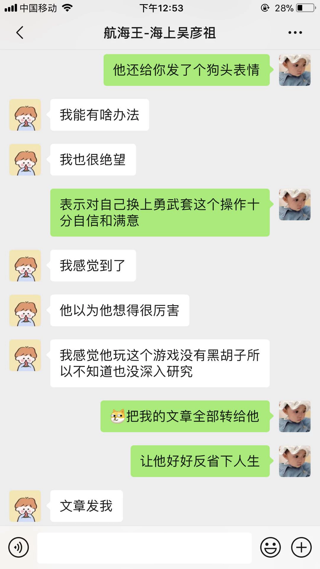聊天记录截图:原是区霸并排在天梯前五名的一个号,被一个萌新接手不到一个礼拜掉分至三十名开外,原号主见状泪流满面... 但既然已经割爱了,大家就当看看笑话吧。